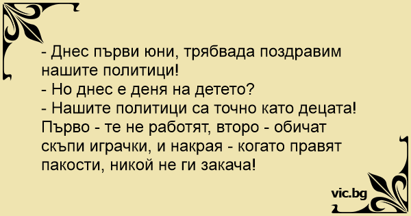 - Днес първи юни, трябвада поздравим нашите политици!