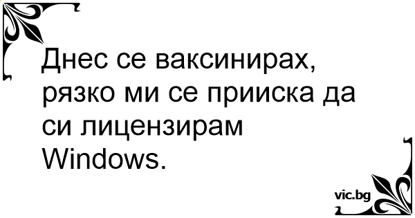 Днес се ваксинирах, рязко ми се прииска да си лицензирам Windows.