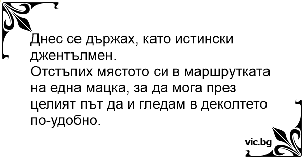 Отстъпих мястото си в маршрутката на една мацка, за да мога през целият път да и гледам в деколтето по-удобно.