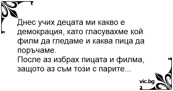 Днес учих децата ми какво е демокрация, като гласувахме кой филм да гледаме и каква пица да поръчаме.