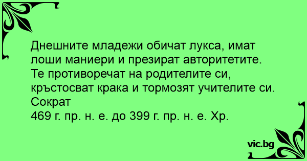 Днешните младежи обичат лукса, имат лоши маниери и презират авторитетите.