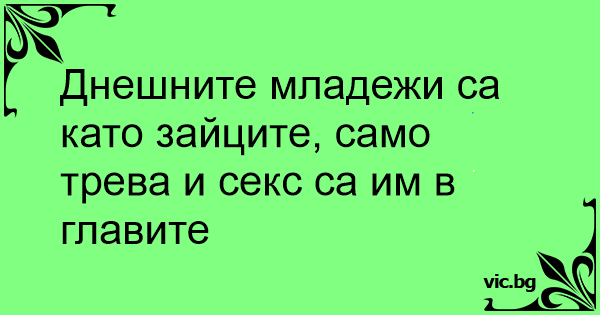 Днешните младежи са като зайците, само трева и cekc са им в главите