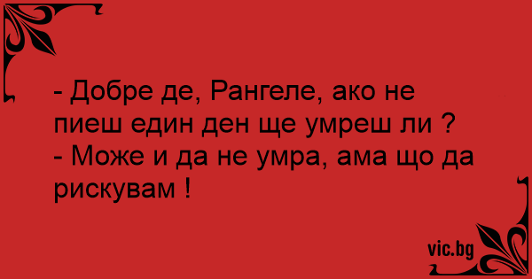 - Добре де, Рангеле, ако не пиеш един ден ще умреш ли ?