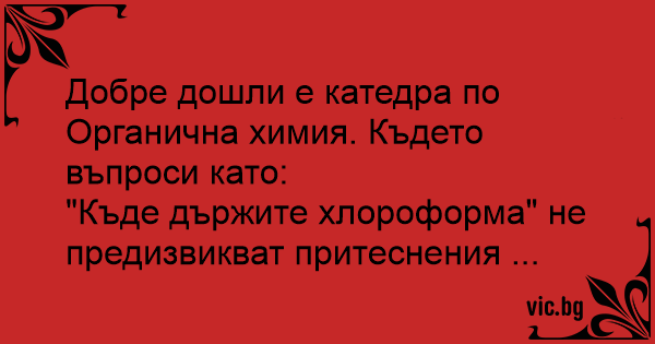 Добре дошли е катедра по Органична химия. Където въпроси като: