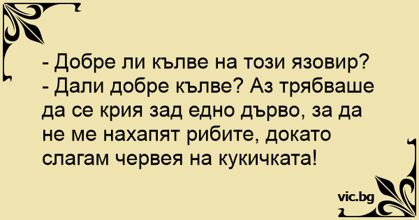 - Дали добре кълве? Аз трябваше да се крия зад едно дърво, за да не ме нахапят рибите, докато слагам червея на кукичката!