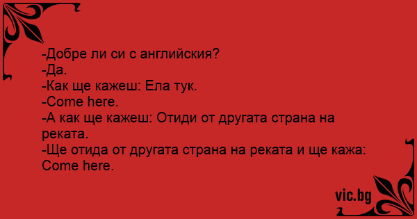 -Ще отида от другата страна на реката и ще кажа: Come here.