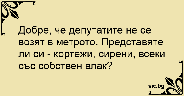 Добре, че депутатите не се возят в метрото. Представяте ли си - кортежи, сирени, всеки със собствен влак?