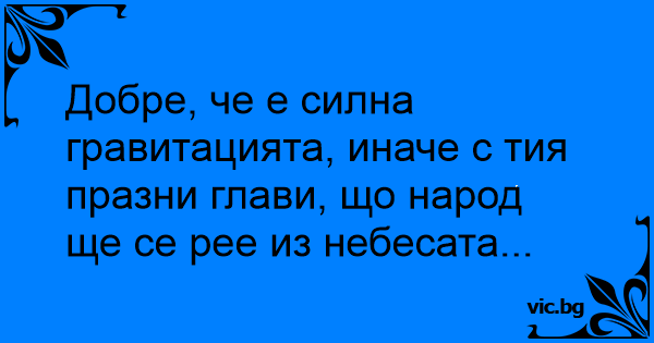 Добре, че е силна гравитацията, иначе с тия празни глави, що народ ще се pee из небесата...