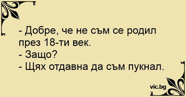 - Добре, че не съм се родил през 18-ти век.