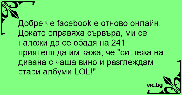 Добре че facebook е отново онлайн.