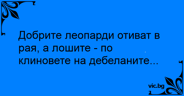Добрите леопарди отиват в рая, а лошите - по клиновете на дебеланите...