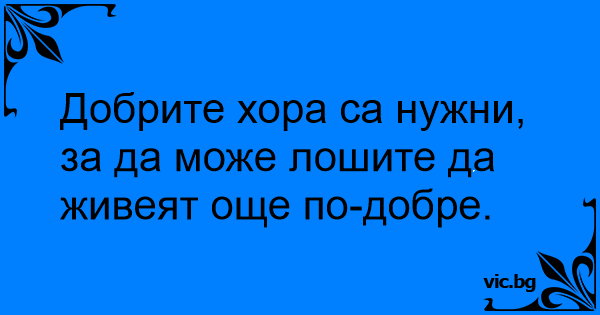 Добрите хора са нужни, за да може лошите да живеят още по-добре.