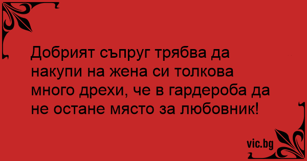 Добрият съпруг трябва да накупи на жена си толкова много дрехи, че в гардероба да не остане място за любовник!