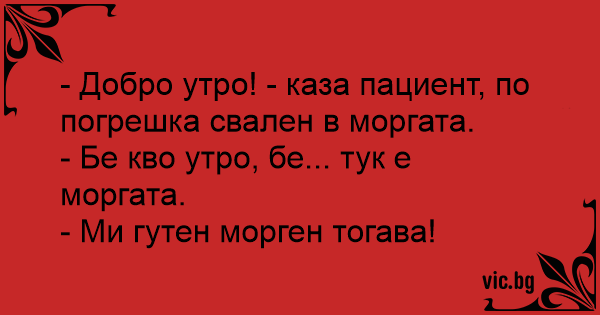 - Добро утро! - каза пациент, по погрешка свален в моргата.