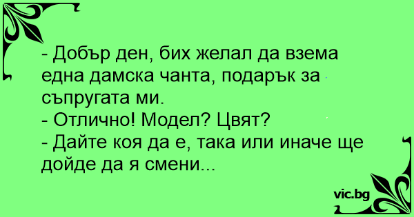 • Вицове от Facebook от нашата страница https://www.facebook.com/www.vic.bg