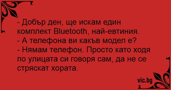 - Добър ден, ще искам един комплект Bluetooth, най-евтиния.