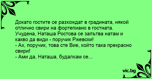 - Ах, поручик, това сте Вие, който така прекрасно свири!
