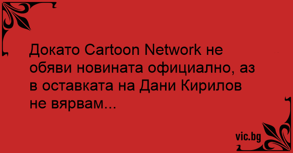 Докато Cartoon Network не обяви новината официално, аз в оставката на Дани Кирилов не вярвам...