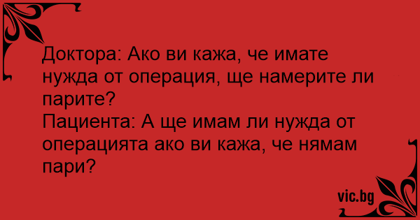Пациента: А ще имам ли нужда от операцията ако ви кажа, че нямам пари?