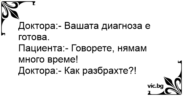 Доктора:- Вашата диагноза е готова.