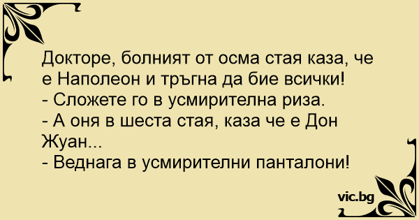 Докторе, болният от осма стая каза, че е Наполеон и тръгна да бие всички!
