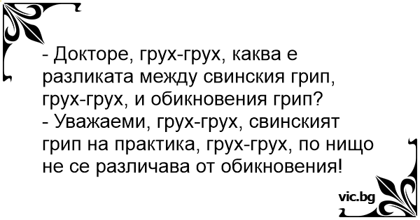 - Докторе, грух-грух, каква е разликата между свинския грип, грух-грух, и обикновения грип?