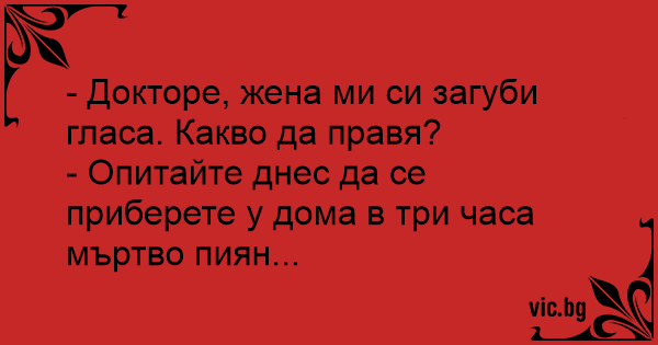 - Докторе, жена ми си загуби гласа. Какво да правя?