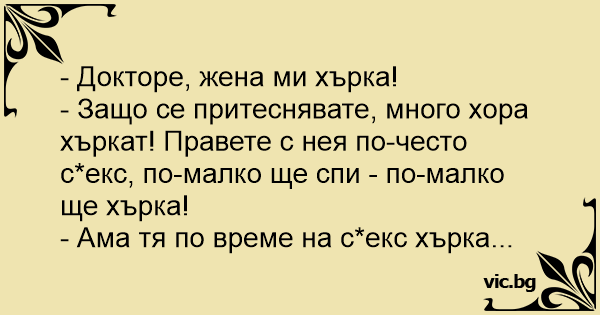 - Защо се притеснявате, много хора хъркат! Правете с нея по-често cekc, по-малко ще спи - по-малко ще хърка!