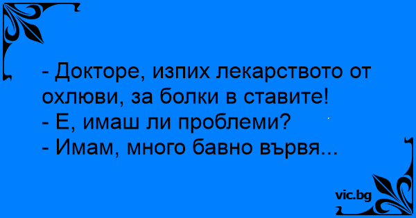 - Докторе, изпих лекарството от охлюви, за болки в ставите!