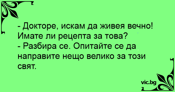 - Докторе, искам да живея вечно! Имате ли рецепта за това?