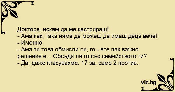 • Вицове от Facebook от нашата страница https://www.facebook.com/www.vic.bg