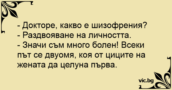 - Значи съм много болен! Всеки път се двуoмя, коя от цициte на жената да целуна първа.