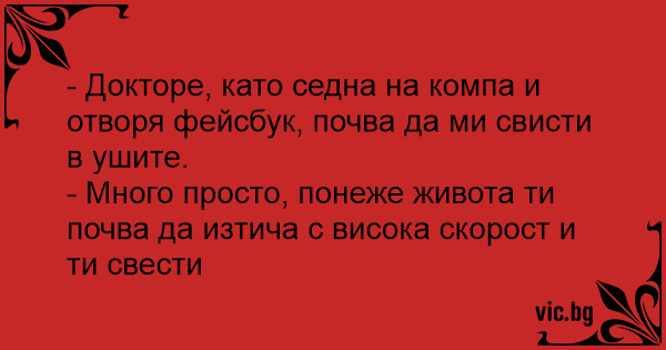 - Докторе, като седна на компа и отворя фейсбук, почва да ми свисти в ушите.