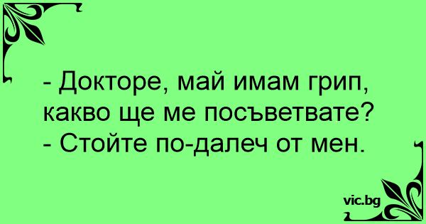 - Докторе, май имам грип, какво ще ме посъветвате?