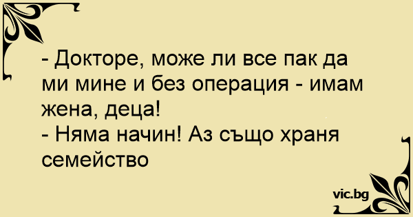 - Докторе, може ли все пак да ми мине и без операция - имам жена, деца!