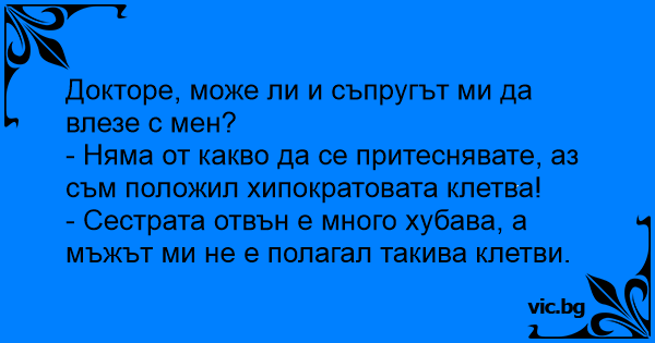 - Няма от какво да се притеснявате, аз съм положил хипократовата клетва!