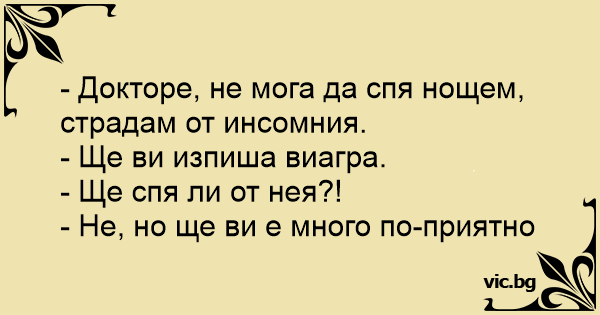 - Докторе, не мога да спя нощем, страдам от инсомния.