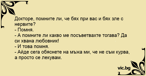 - Айде сега обяснете на мъжа ми, че не съм kуpba, а просто се лекувам.