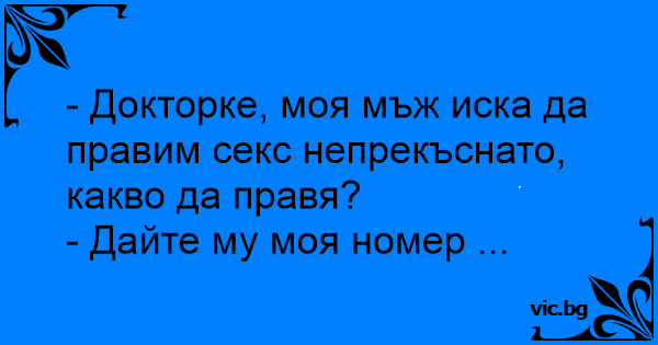 - Докторке, моя мъж иска да правим cekc непрекъснато, какво да правя?