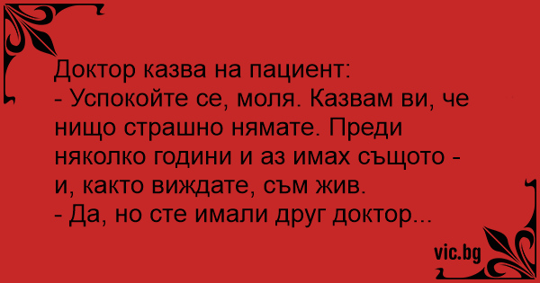 - Успокойте се, моля. Казвам ви, че нищо страшно нямате. Преди няколко години и аз имах същото - и, както виждате, съм жив.