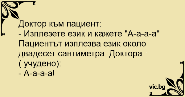 Пациентът изплезва език около двадесет сантиметра. Доктора( учудено):