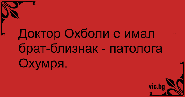 Доктор Охболи е имал брат-близнак - патолога Охумря.