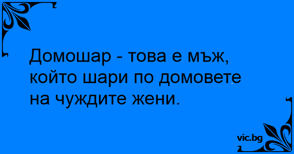 Домошар - това е мъж, който шари по домовете на чуждите жени.