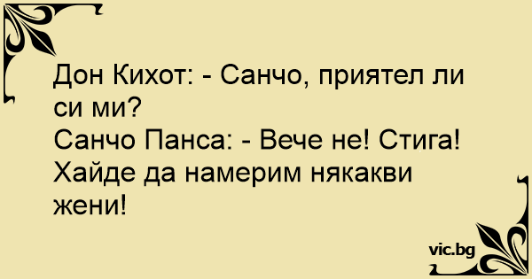 Дон Кихот: - Санчо, приятел ли си ми?