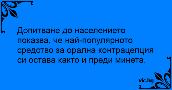 Допитване до населението показва, че най-популярното средство за орална контрацепция си остава както и преди минета.