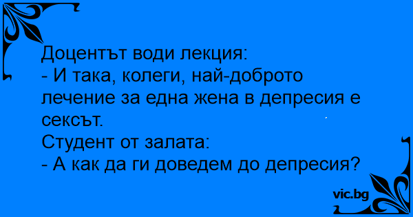 - И така, колеги, най-доброто лечение за една жена в депресия е cekcъt.