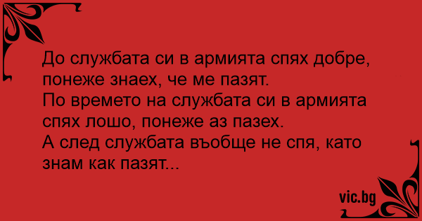 По времето на службата си в армията спях лошо, понеже аз пазех.