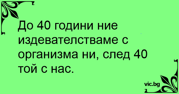 До 40 години ние издевателстваме с организма ни, след 40 той с нас.