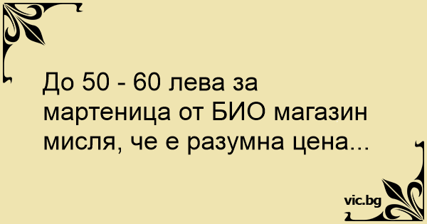 До 50 - 60 лева за мартеница от БИО магазин мисля, че е разумна цена...