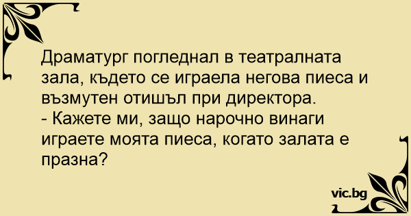 - Кажете ми, защо нарочно винаги играете моята пиеса, когато залата е празна?